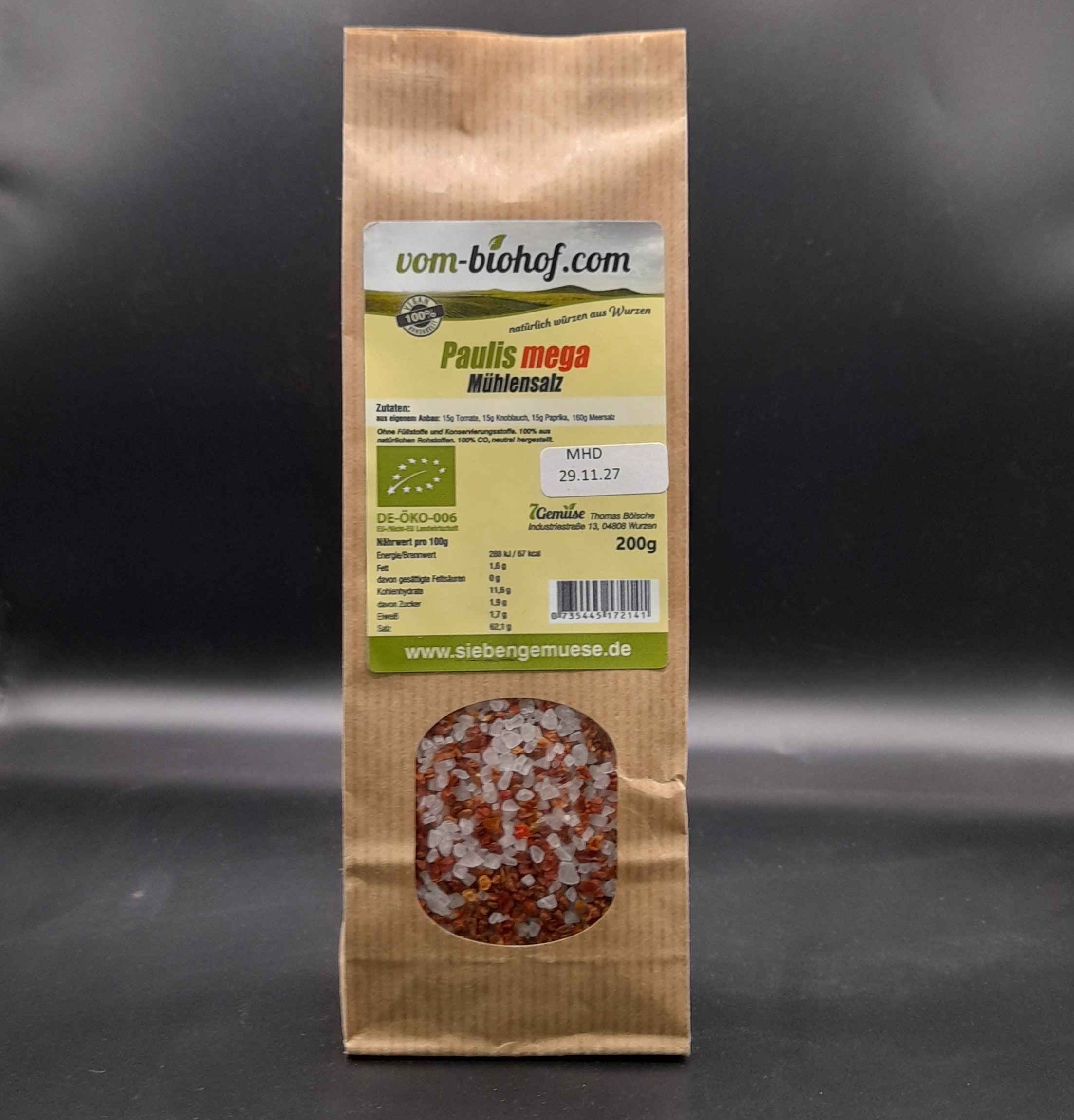Meersalz grob 155g, Tomate, Paprika und Knoblauch